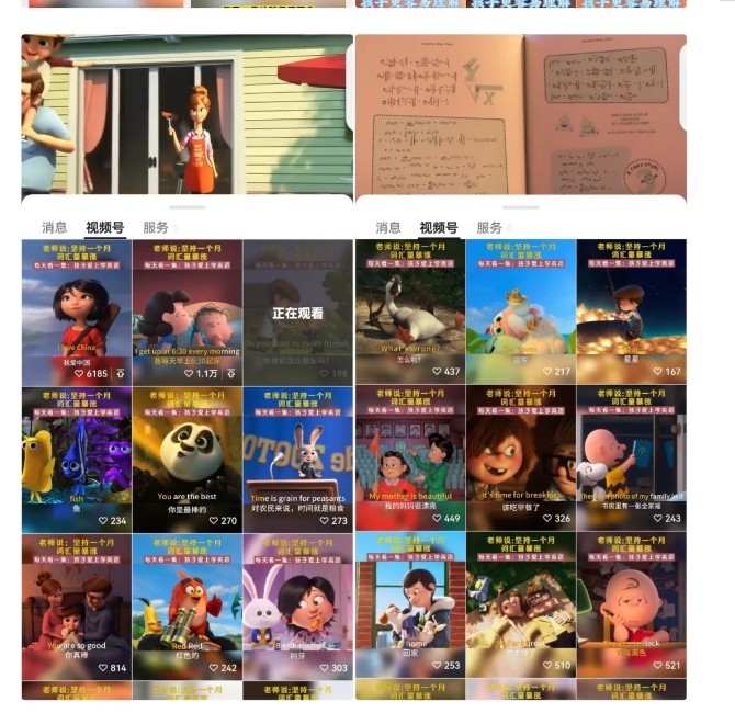 今天给分享一个最新的视频号项目,就是英语启蒙动画,视频号目前正值红利期,大家一定要重视起来,可以算是目前的蓝海!